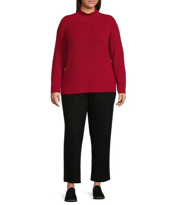 Plus Size Merino Wool Ribbed Turtleneck Long Raglan Sleeve Sweater