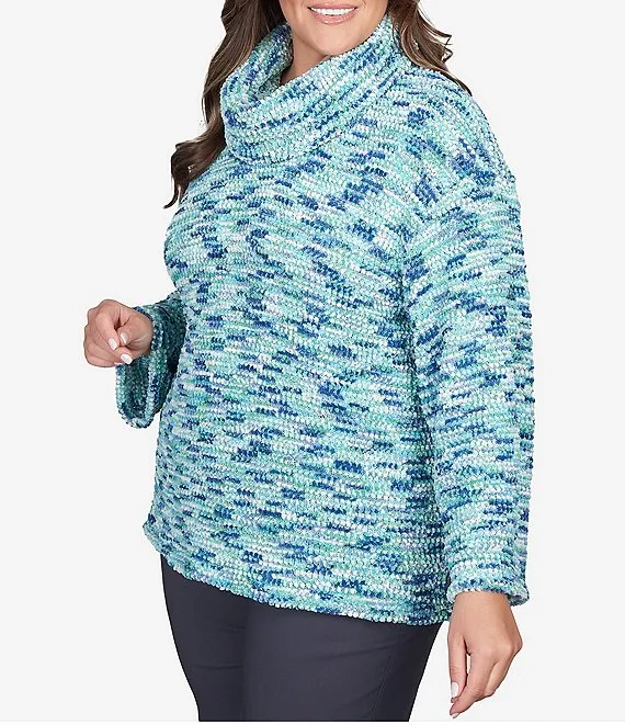 Plus Size Nubby Knit Space Dye Funnel Neck Sweater