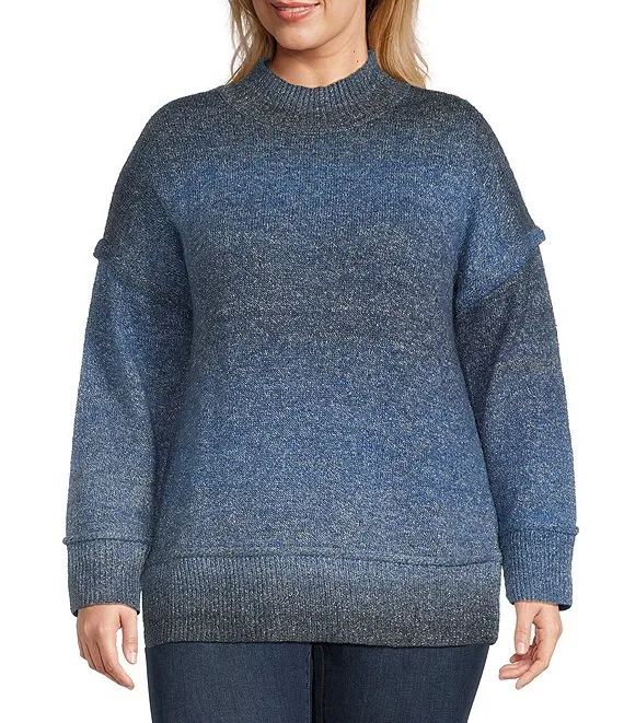 Plus Size Ombre Long Sleeve Mock Neck Sweater