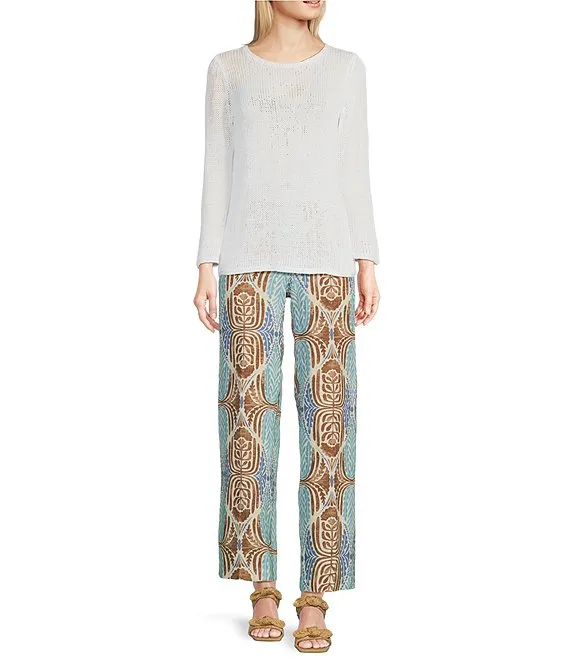 Raelyn Linen Cotton Blend Crew Neck Long Sleeve Sweater