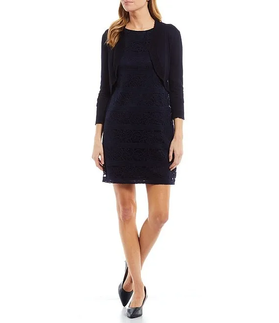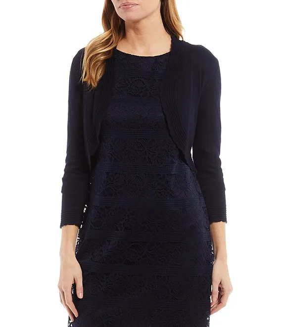 Scallop Rib Trim 3/4 Sleeve Open Front Bolero Shrug