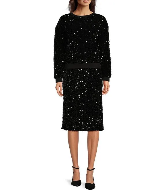 Calvin Klein Sequin Crew Neck Long Sleeve Coordinating Sweater