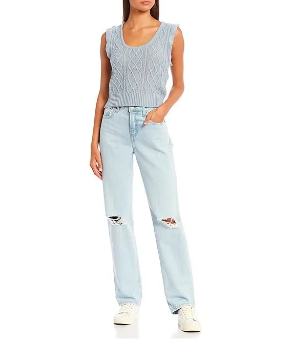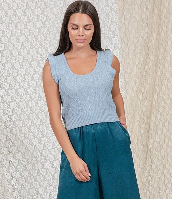 Sleeveless Scoop Neck Cable Knit Sweater Vest
