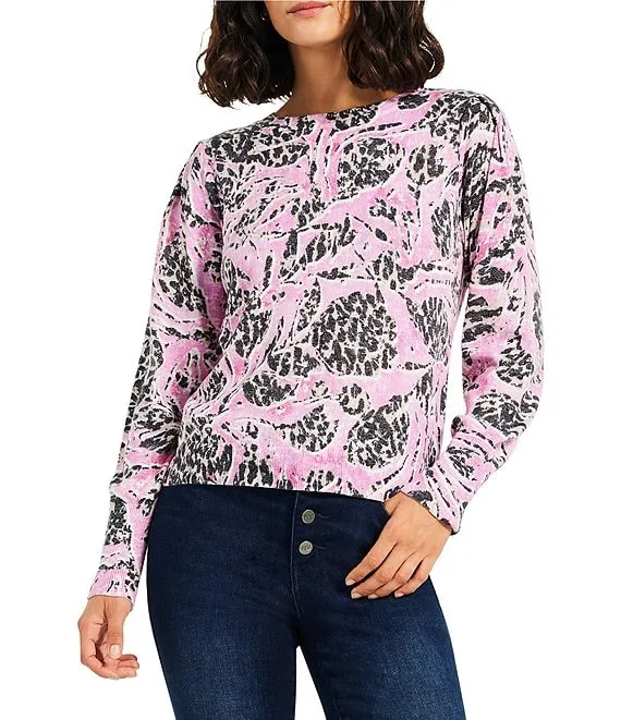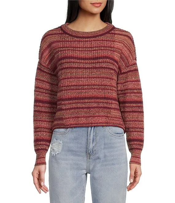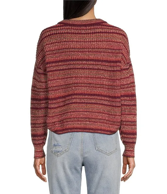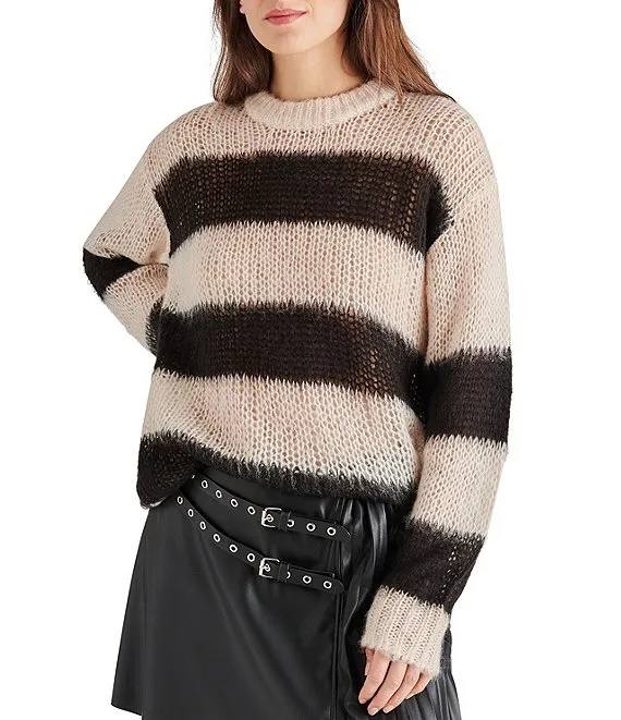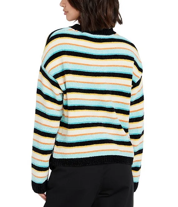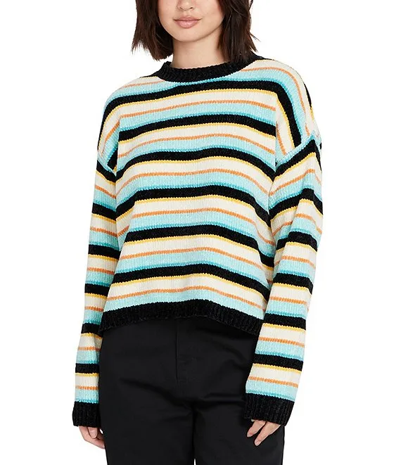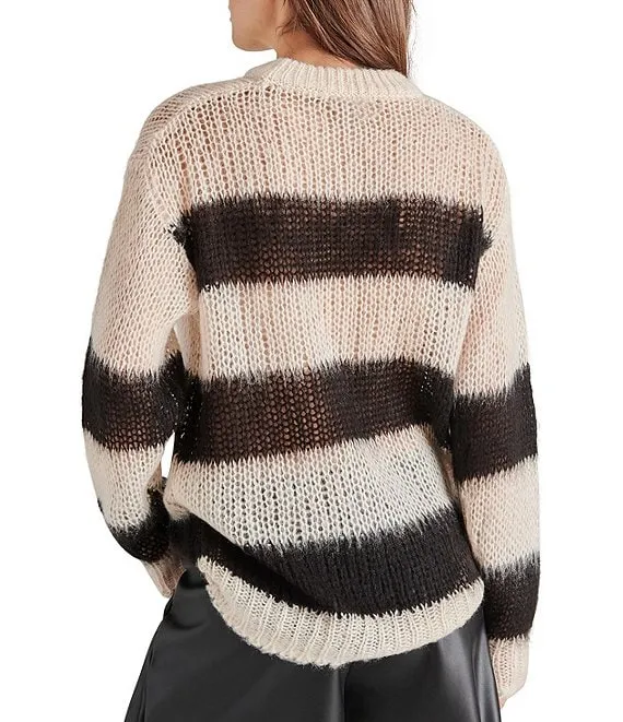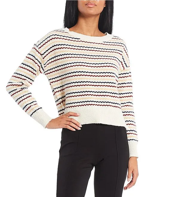 Elson Oversized Stripe Print Crew Neck Long Sleeve Sweater