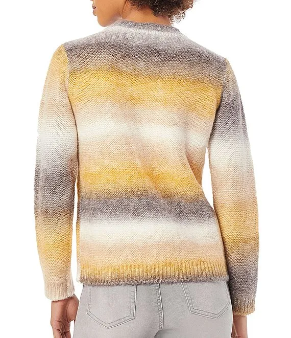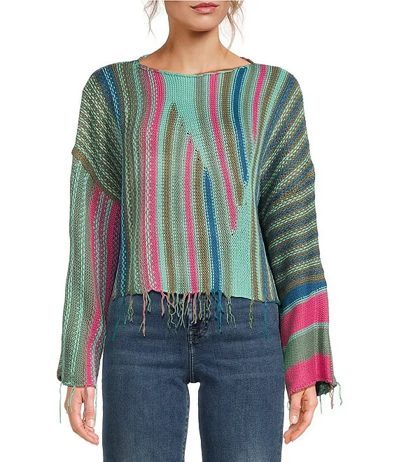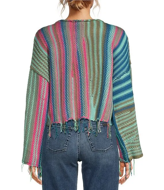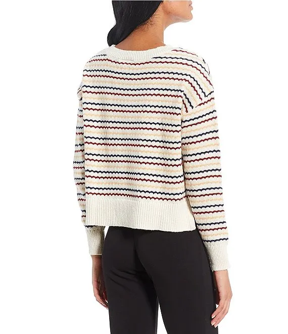 Crew Neck Multi Stripe Print Sweater