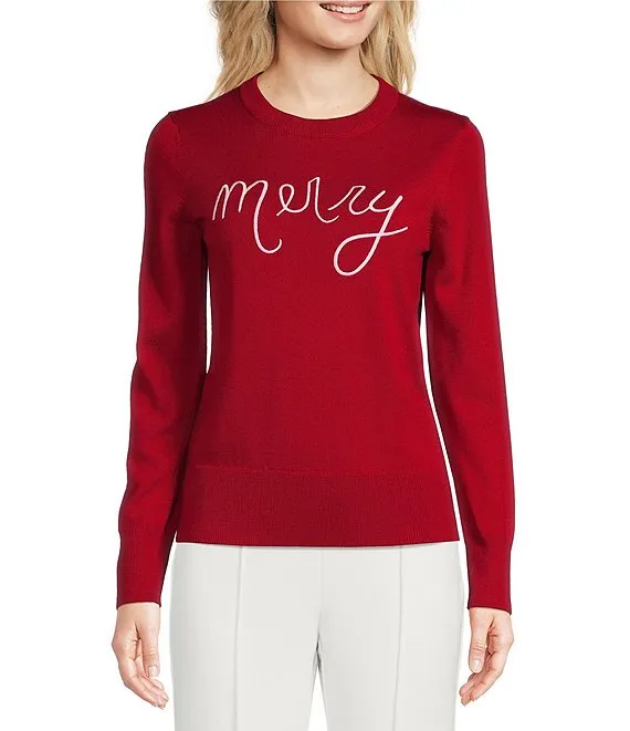 Merry Script Print Crew Neck Long Sleeve Festive Sweater