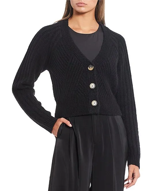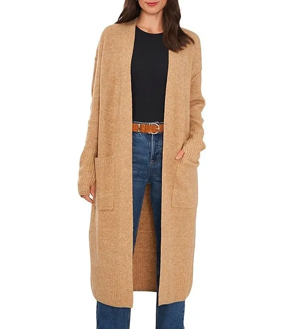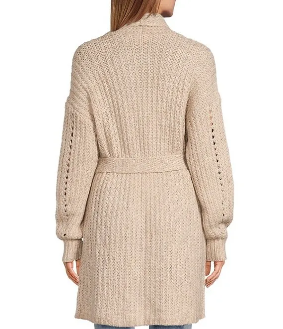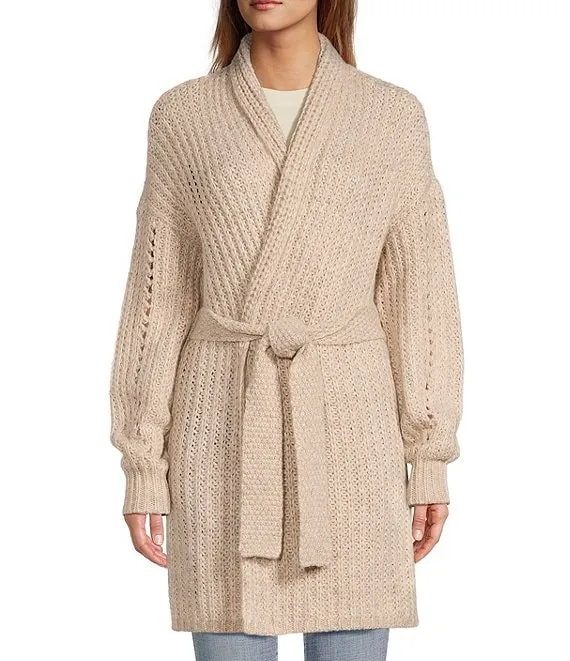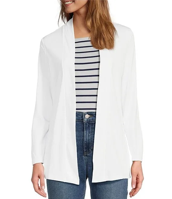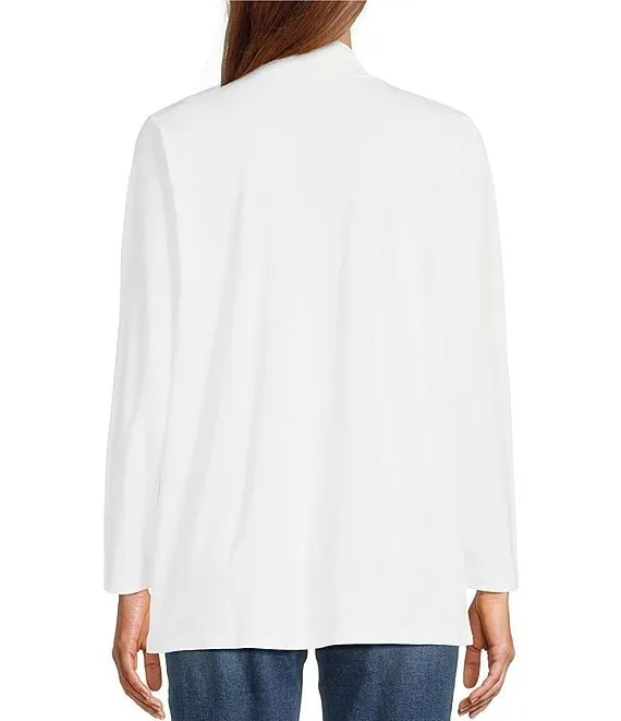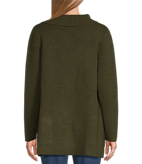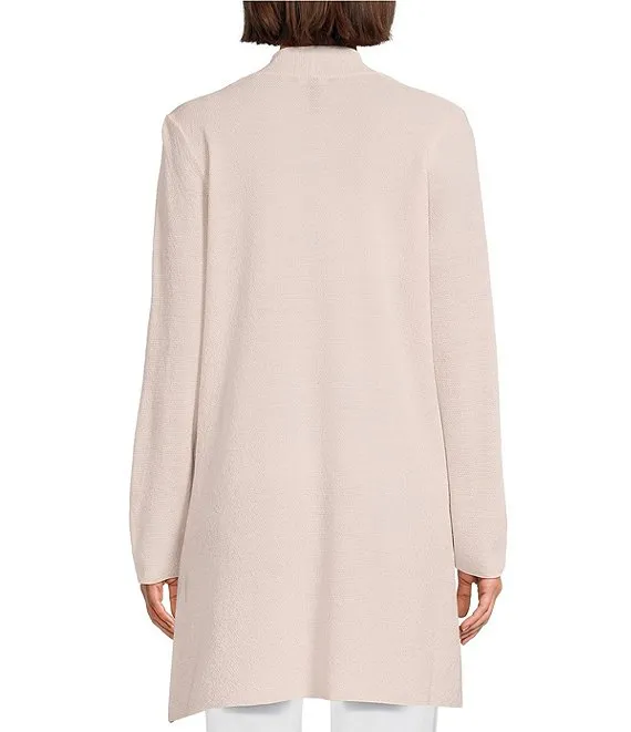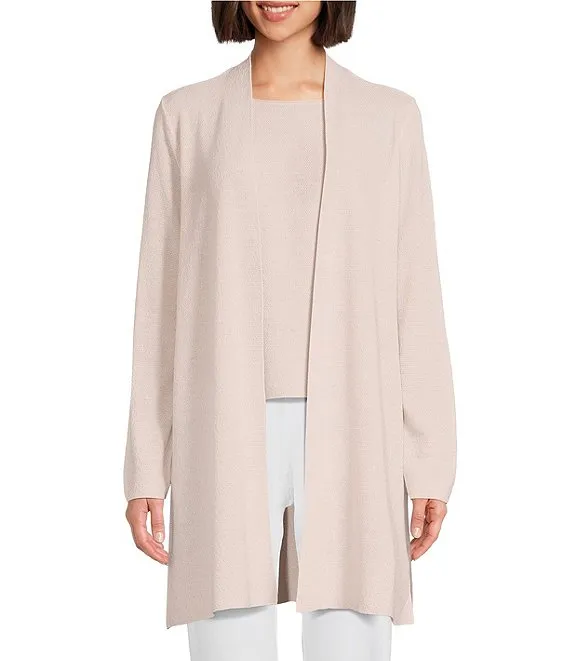 Merino Wool Crepe Long Sleeve Side Slit Open-Front Cardigan