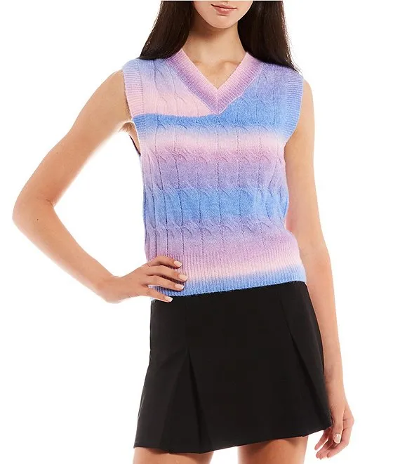 Gradient Tie-Dye Cable Knit Sweater Vest