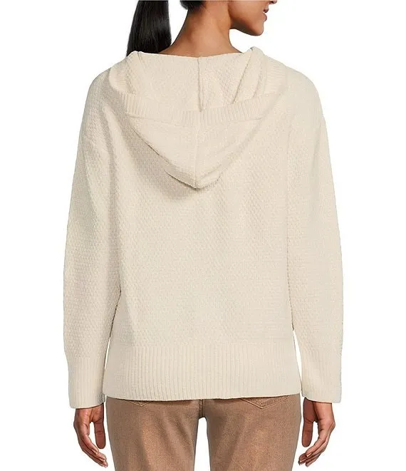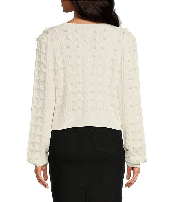 Cable Mix Popcorn Stitch Funnel Neck Long Sleeve Sweater
