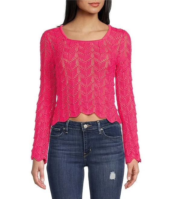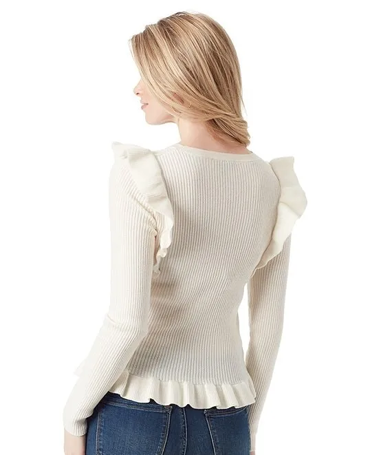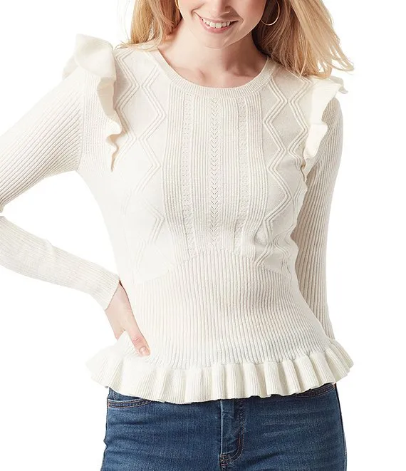 Skye Pointelle Stitch Ruffle Sweater
