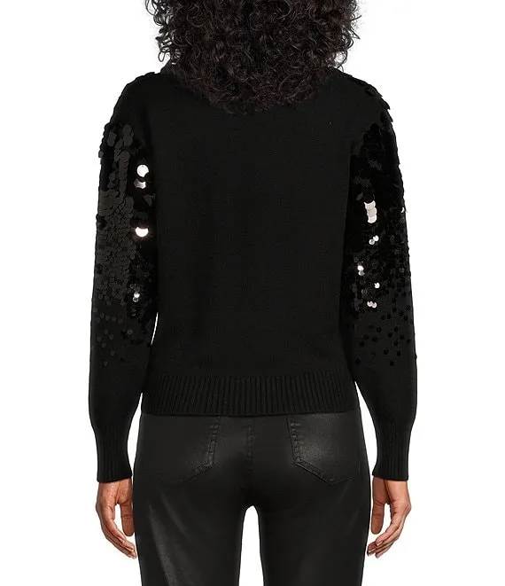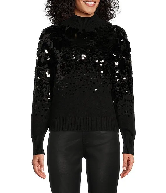 Mock Ribbed Neck Paillette Sequin Sweater