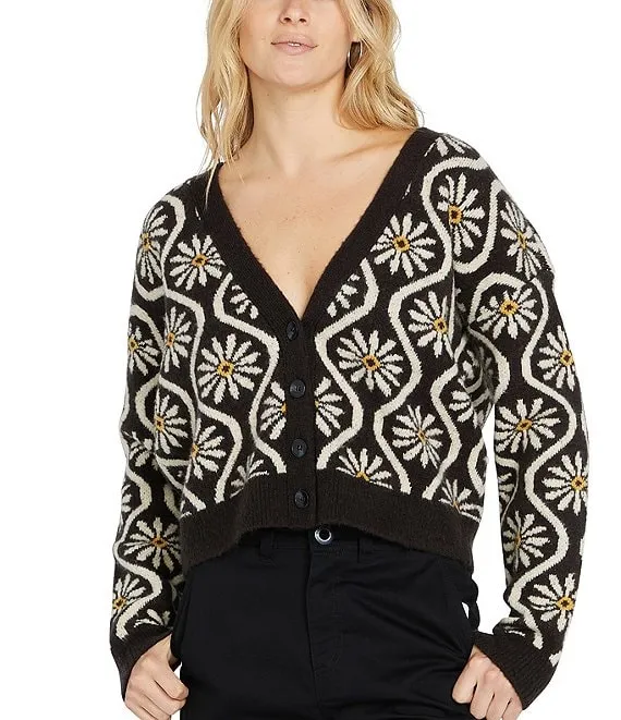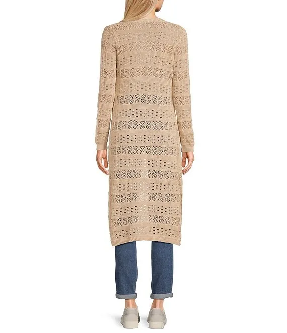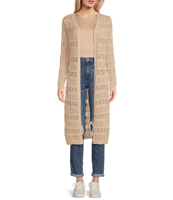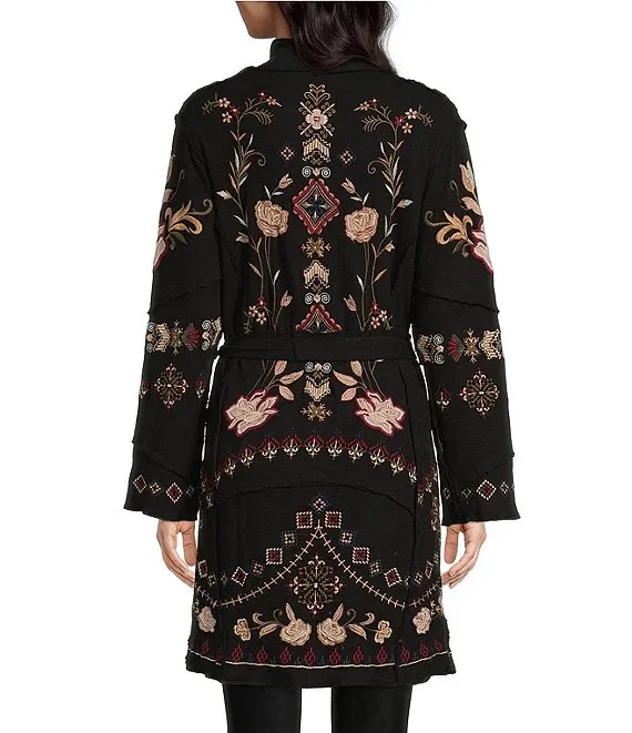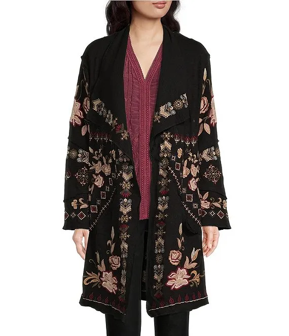 Embroidered Floral Print Long Sleeve Open Front Cardigan