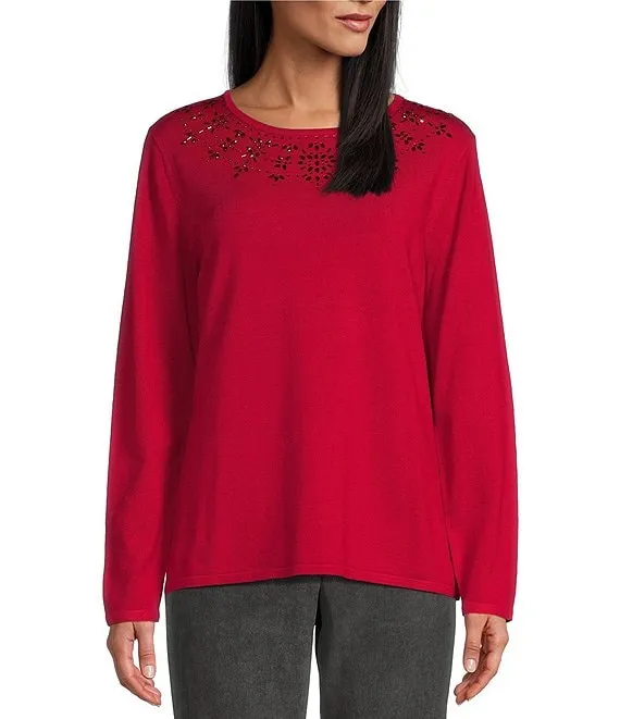 Long Sleeve Crew Neckline Embellished Sweater