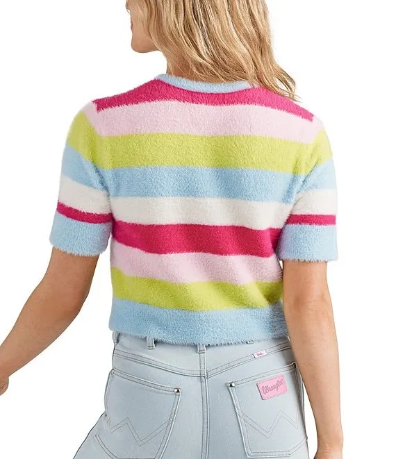 Wrangler® X Barbie Cropped Stripe Fuzzy Sweater
