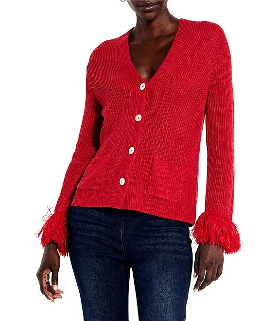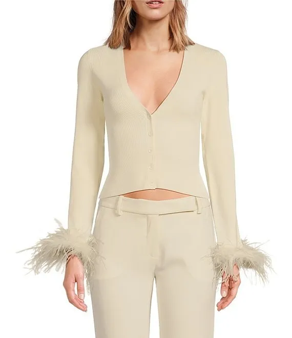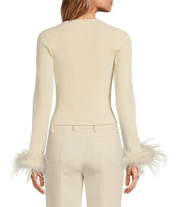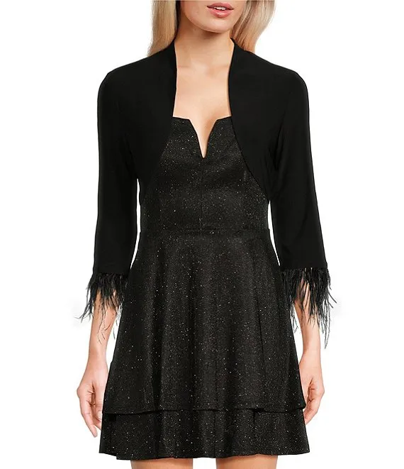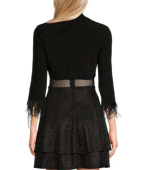 Long Sleeve Feather Trim Shrug