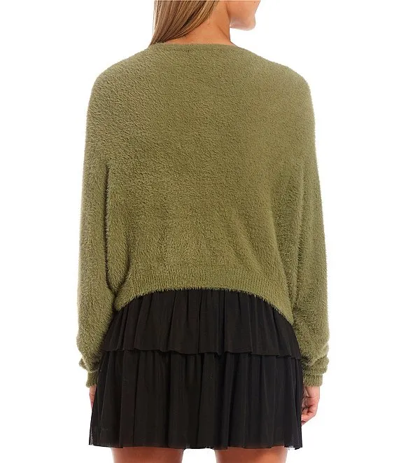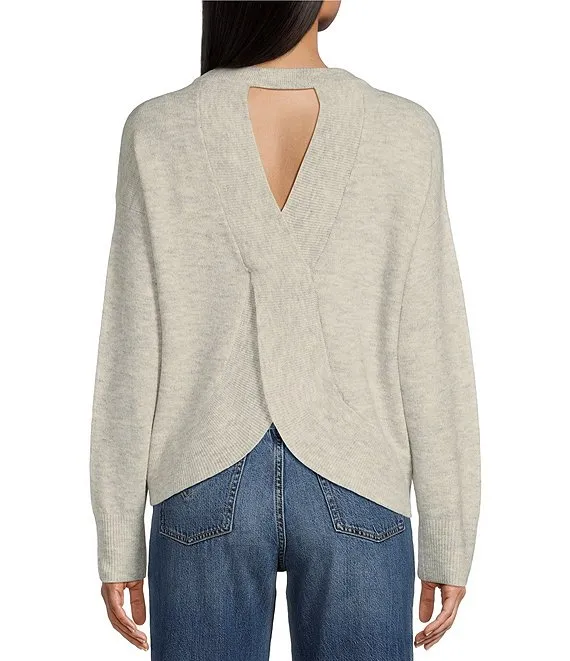 Long Sleeve Crossover Back Crew Neck Sweater