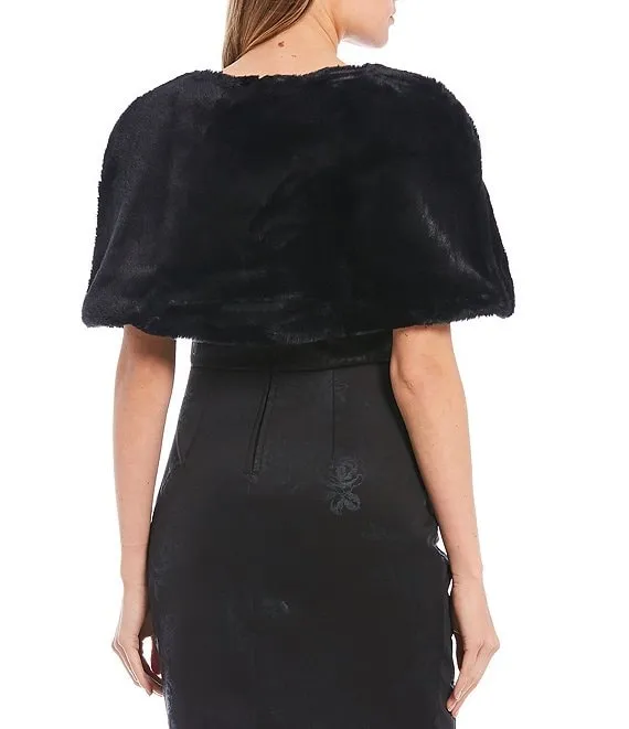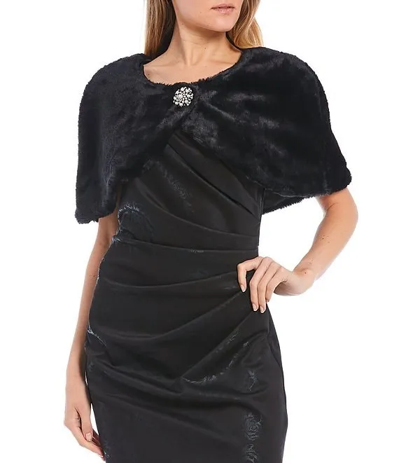 Brooch-Closure Faux-Fur Cape