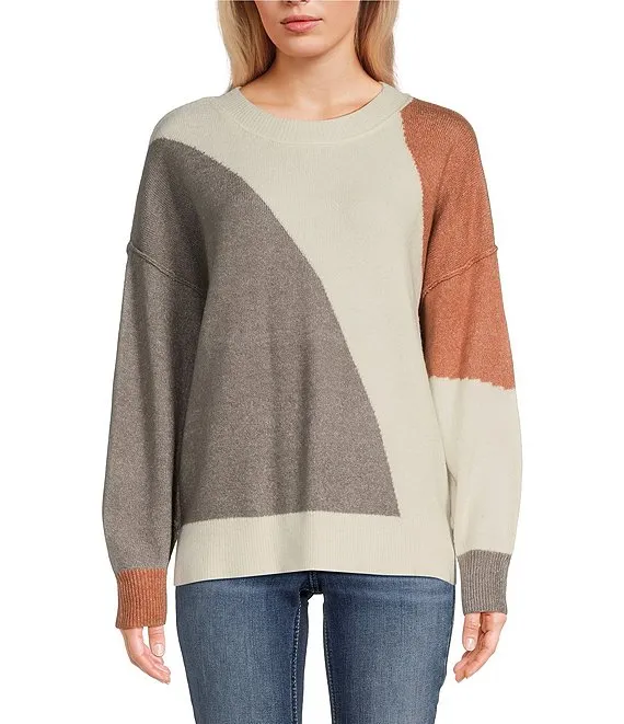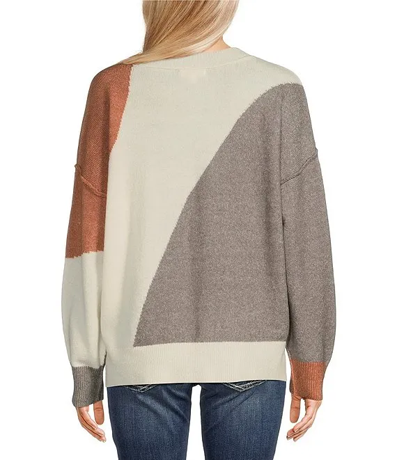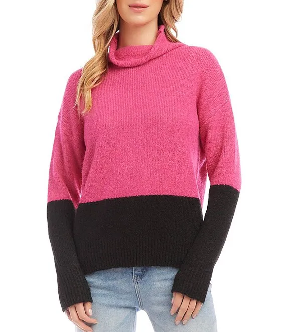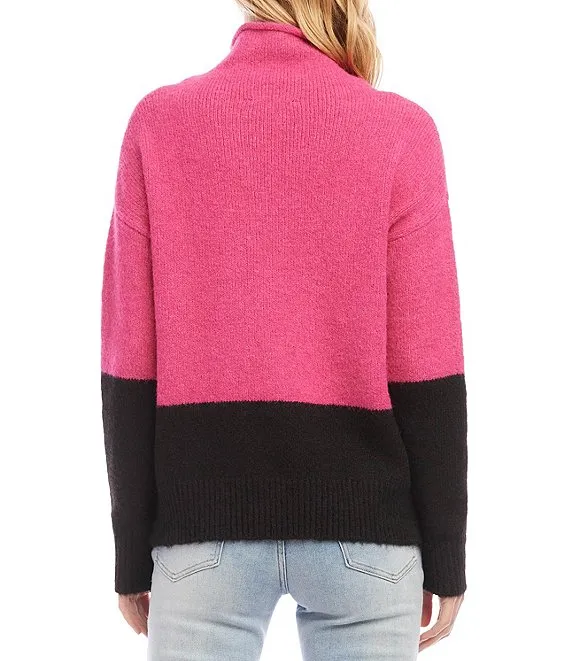 Karen Kane Color Block Turtleneck Long Sleeve Knit Sweater