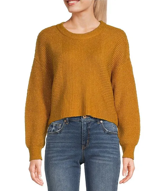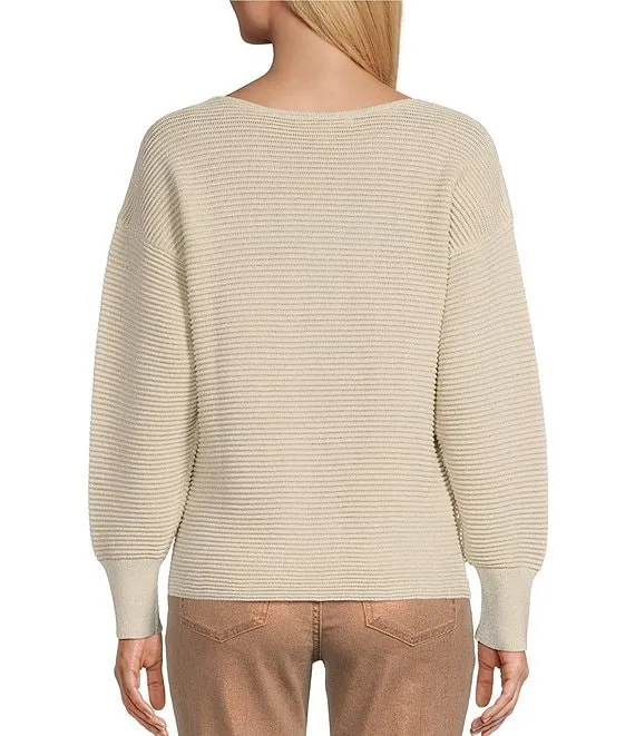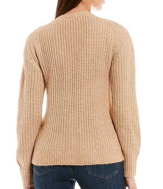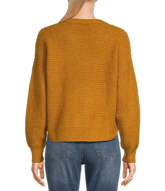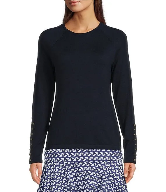 Jamey Crew Neck Button Trim Raglan Sleeve Sweater