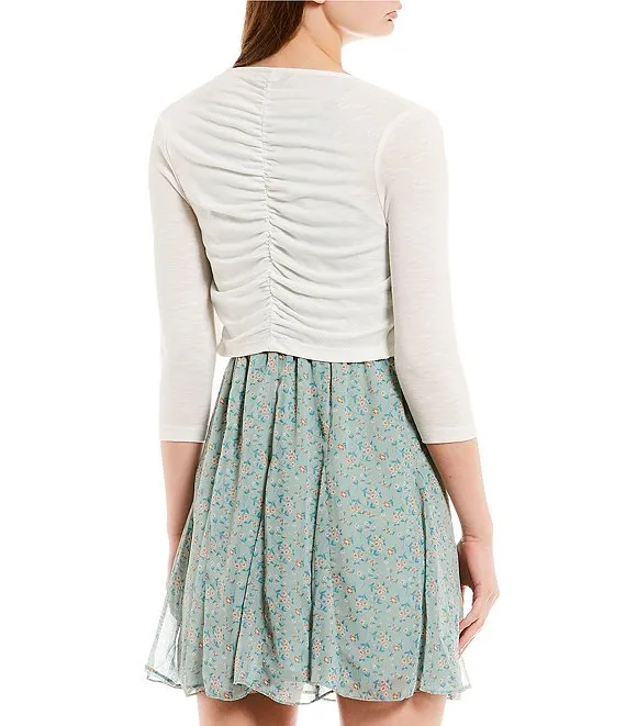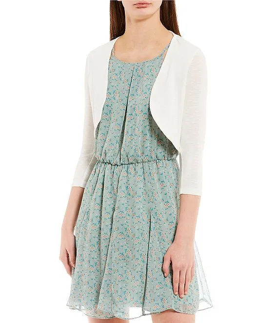 Scallop Rib Trim 3/4 Sleeve Open Front Bolero Shrug