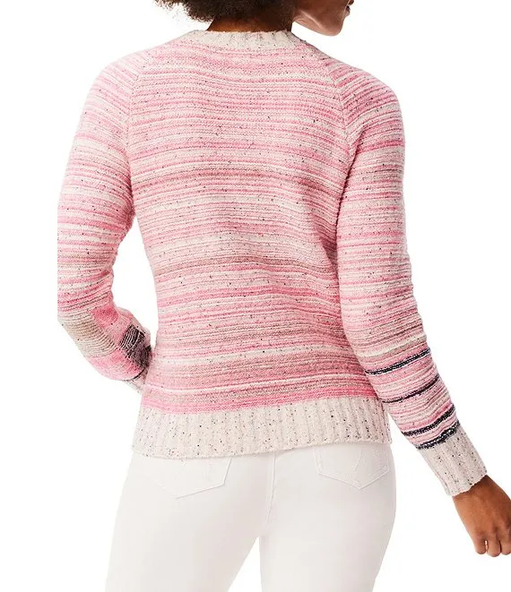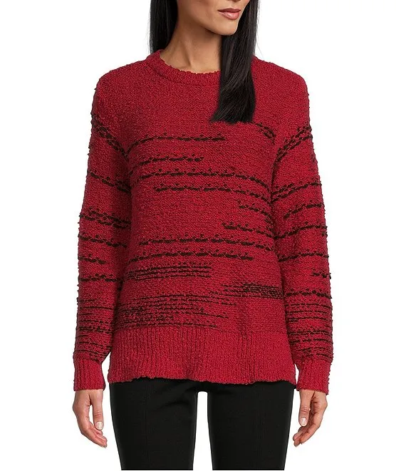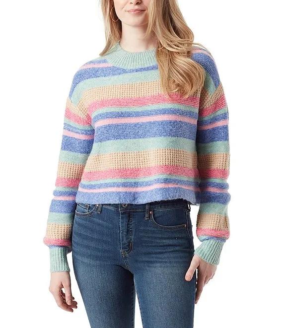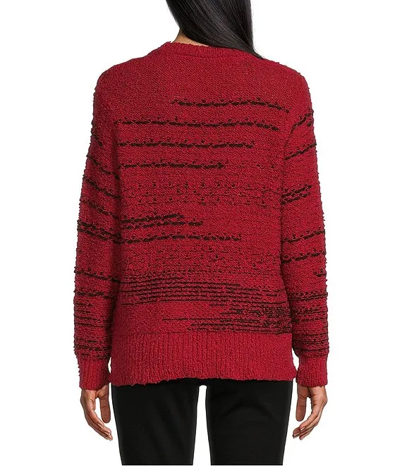 Heat Mix Stripe Print Round Neck Long Sleeve Sweater