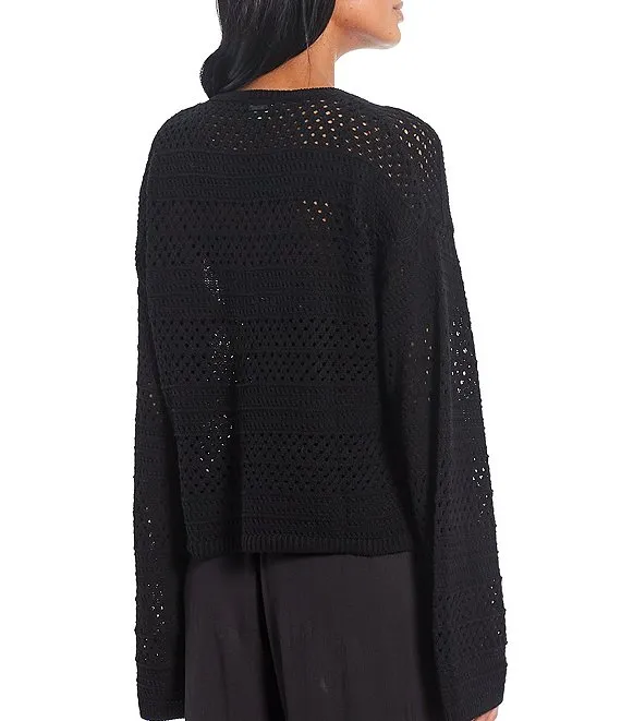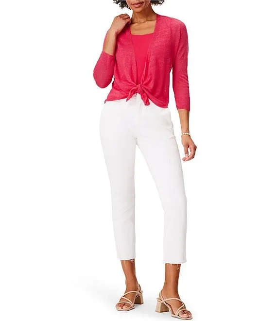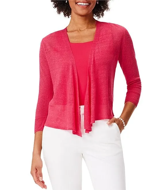 Lightweight 4-Way Linen Blend Open Front 3/4 Sleeve Cardigan