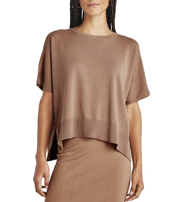 Veronica Crew Neck Short Sleeve Tunic Sweater