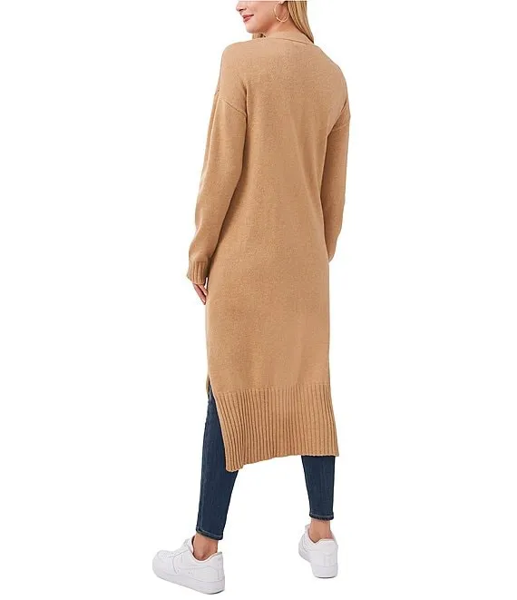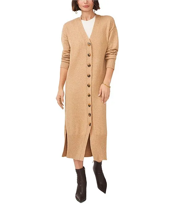 V-Neck Long Sleeve Button Front Long Cardigan