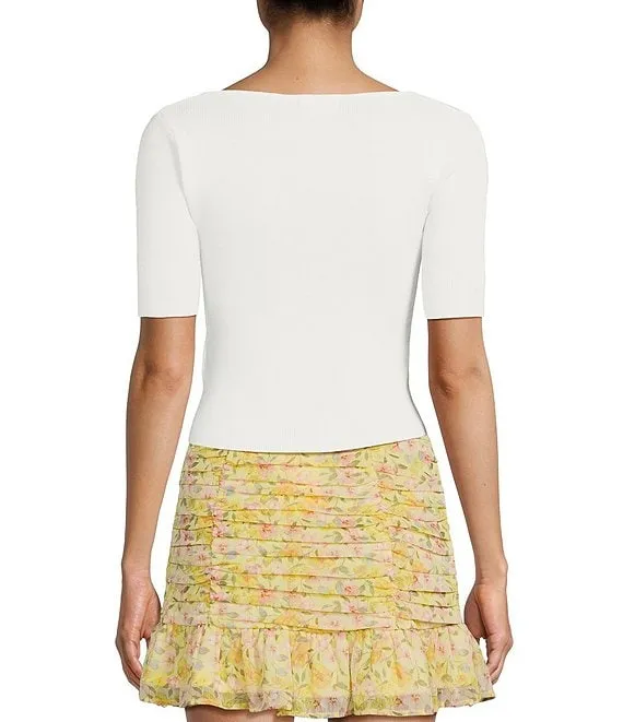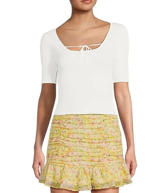 Short Sleeve Tie Front Sweater Top