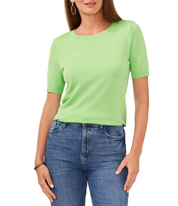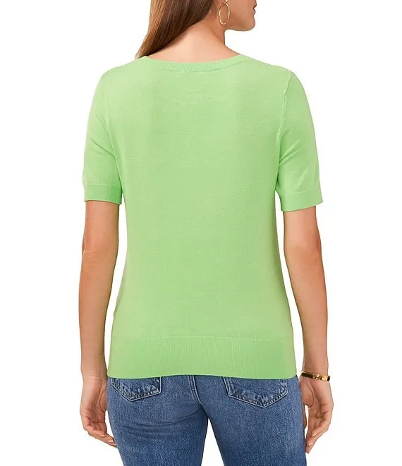 Crew Neck Short Sleeve Ribbed Knit Sweater