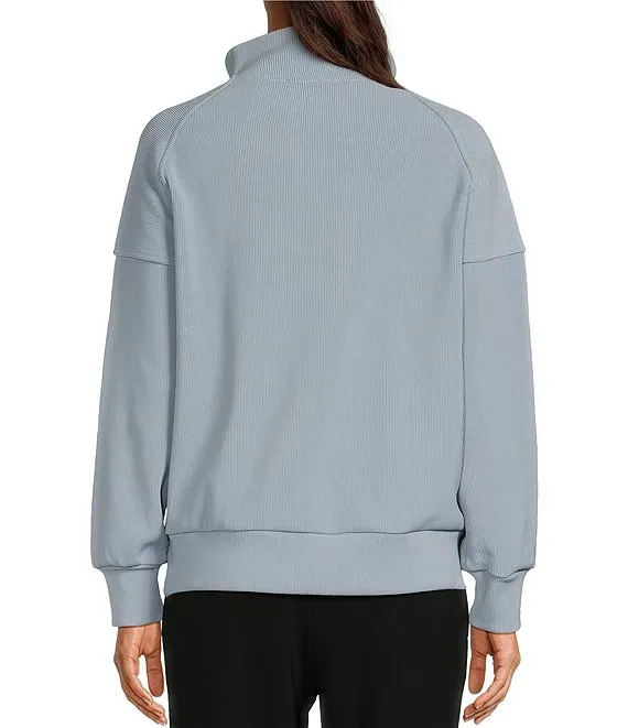 Rhea Relaxed Stand Collar Long Sleeve Drop Shoulder Quarter Zip Pullover