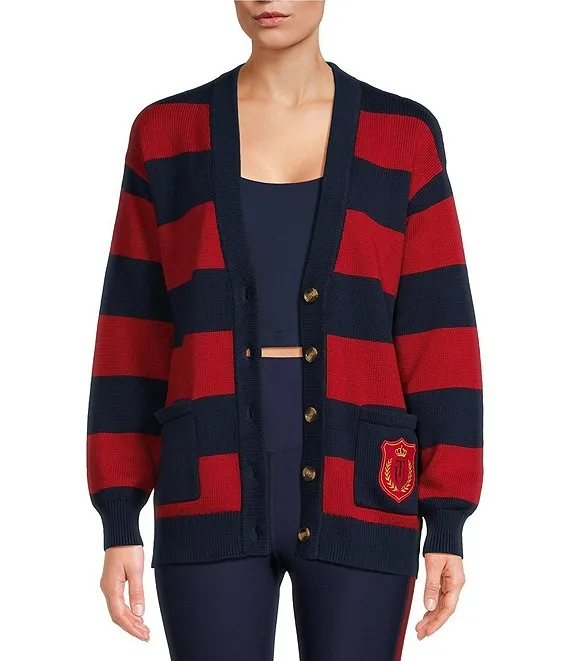 Roosevelt Piper Striped Knit Patch Pocket Cardigan