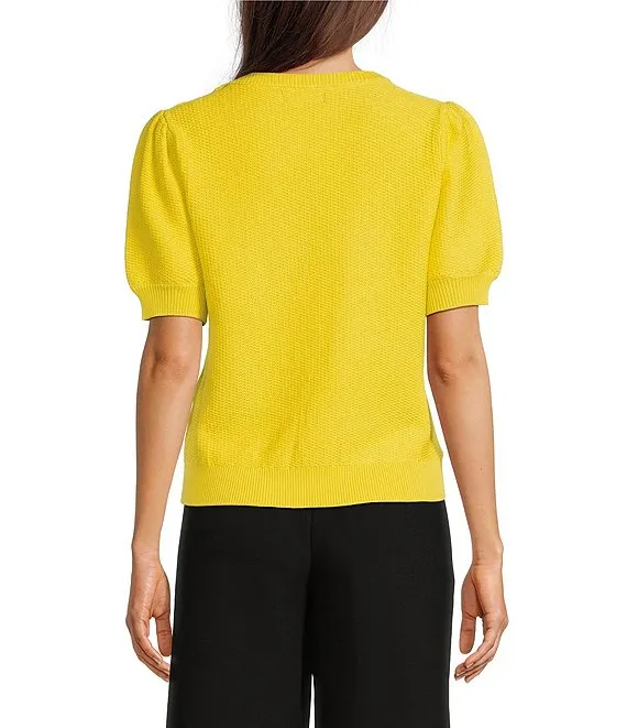 Short Sleeve Button Shoulder Detail Waffle Sweater
