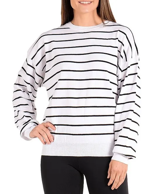 Reagan Stripe Print Cotton Crew Neck Long Sleeve Sweater