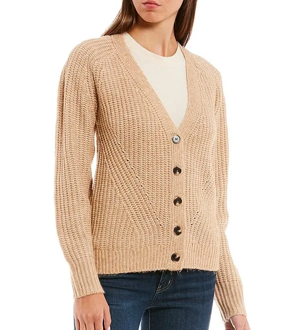UGG Logo Wool Blend V-Neck Button Front Long Sleeve Cardigan