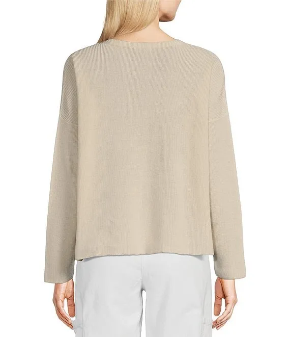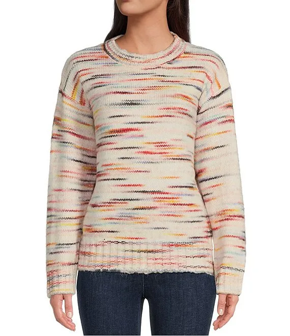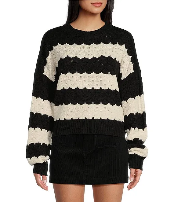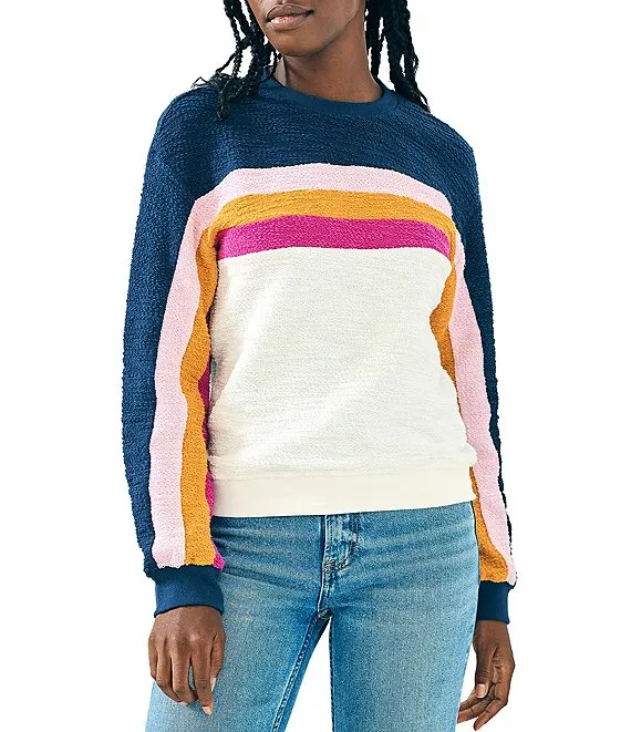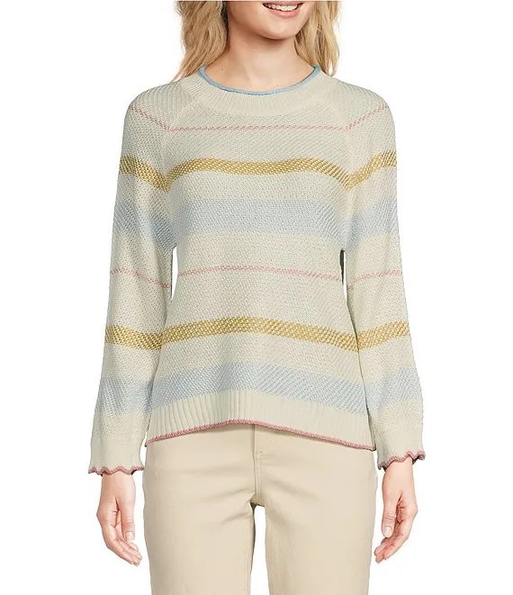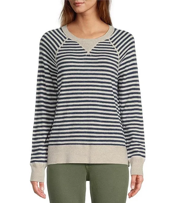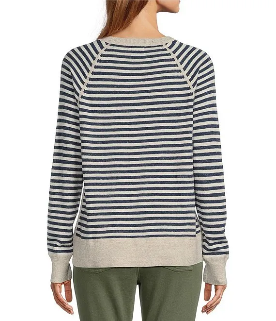Organic Cotton Slub Knit Stripe Print Crew Neck Long Sleeve Sweater