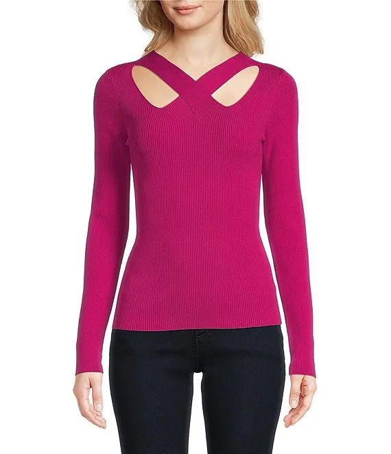 MICHAEL Michael Kors Criss-Cross V-Neck Long Sleeve Sweater Top
