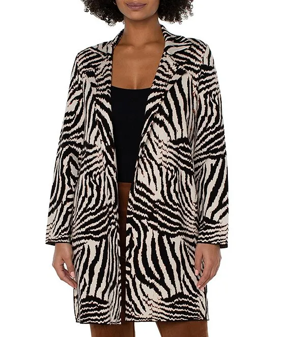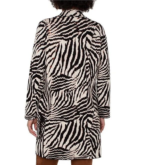 Zebra Print Notch Collar Long Sleeve Open Front Coatigan