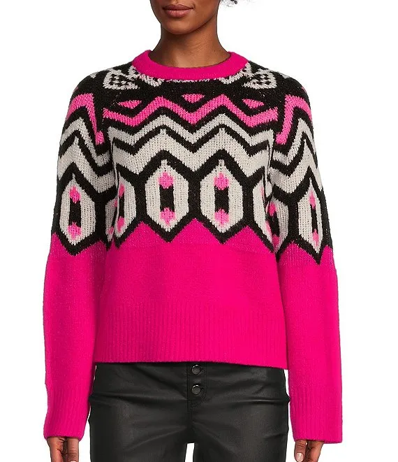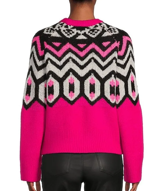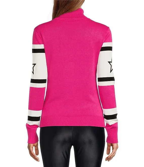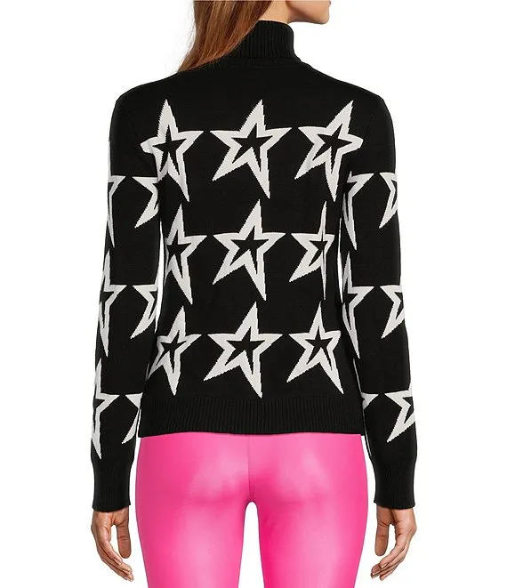 Antonio Melani Active Star Ski Repeat Motif Ribbed Turtleneck Long Sleeve Statement Sweater
