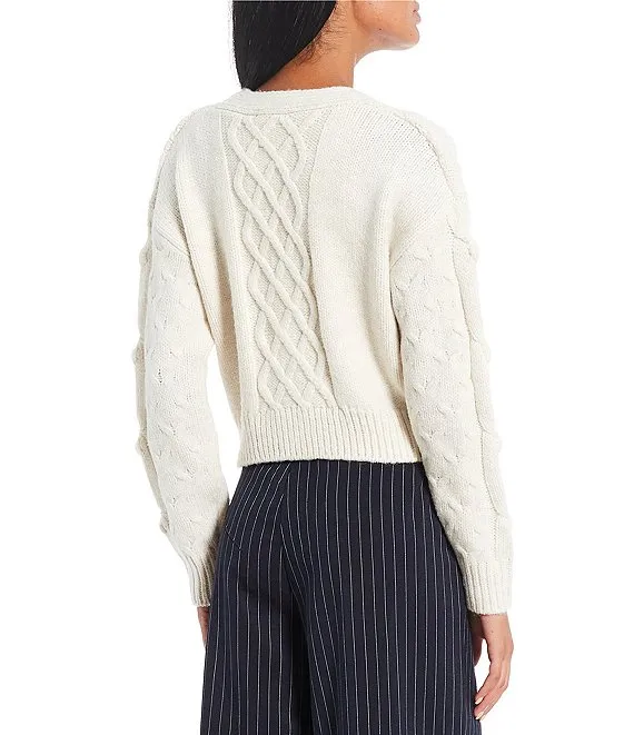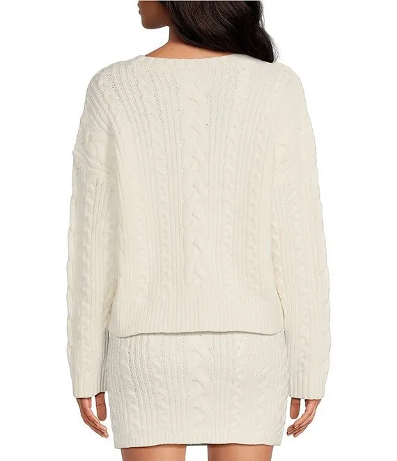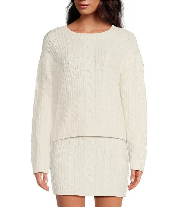x Nastia Liukin Nadia Cable Knit Crew Neck Coordinating Pullover Sweater