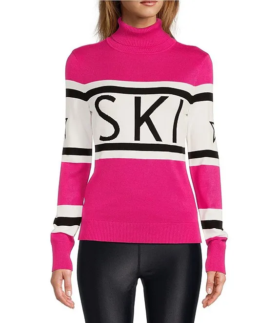 Antonio Melani Active Ski Motif Ribbed Turtleneck Long Sleeve Statement Sweater