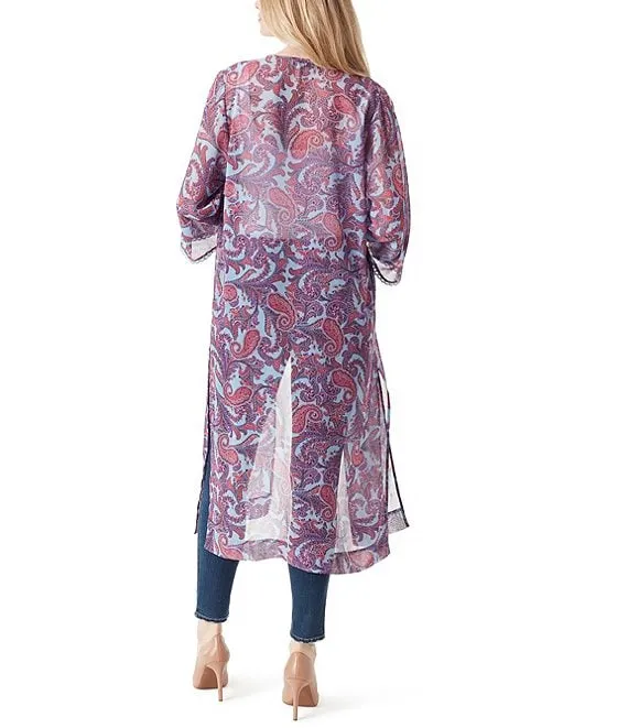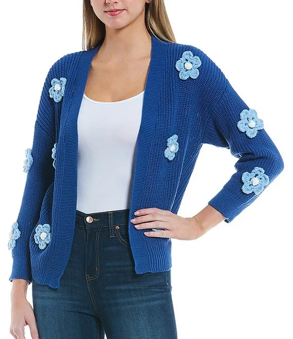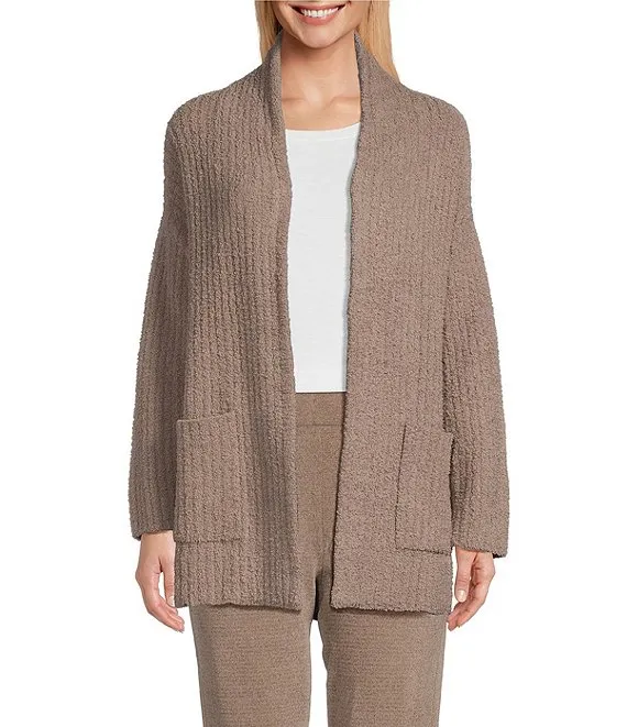 Long Puff Sleeve Open Front Fringe Cardigan