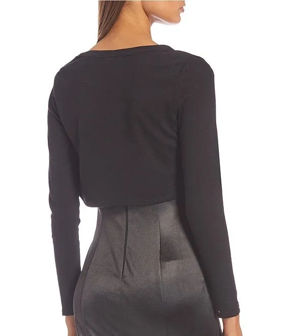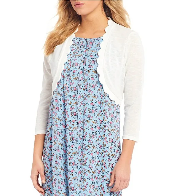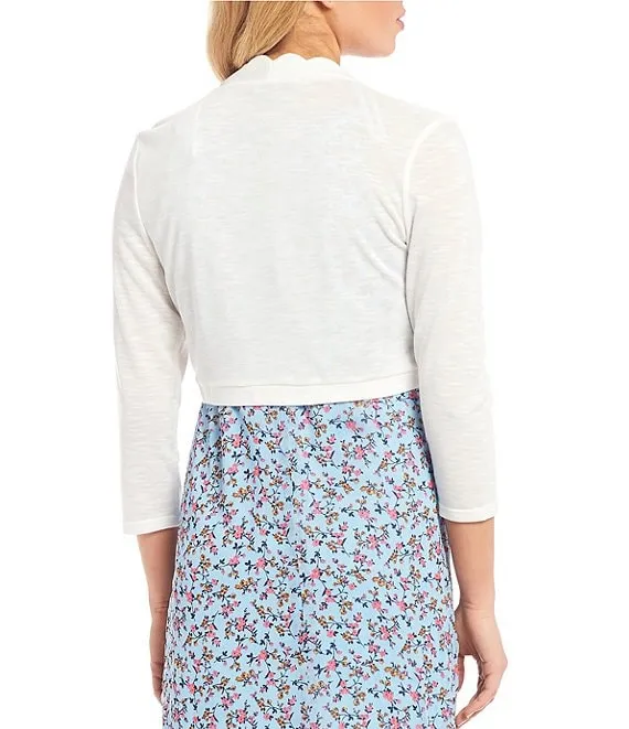 3/4 Sleeve Scalloped Hem Cropped Cardigan