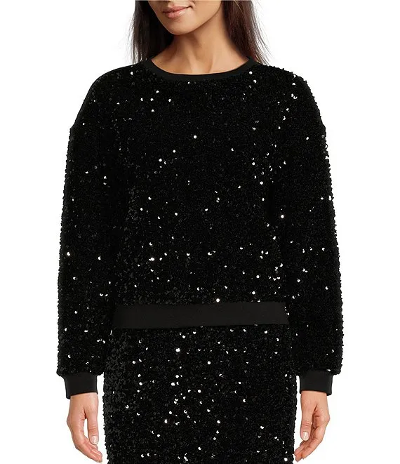 Calvin Klein Sequin Crew Neck Long Sleeve Coordinating Sweater