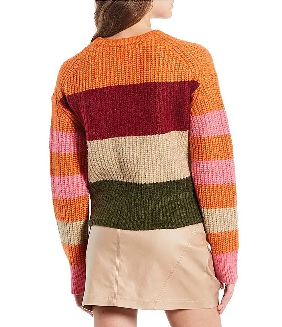 Multicolor Stripe Acrylic High Round Neck Long Sleeve Sweater