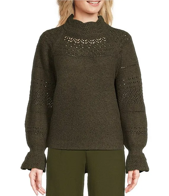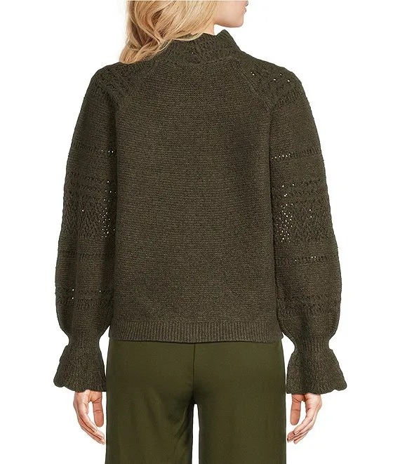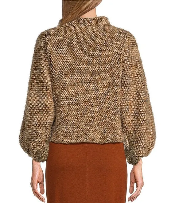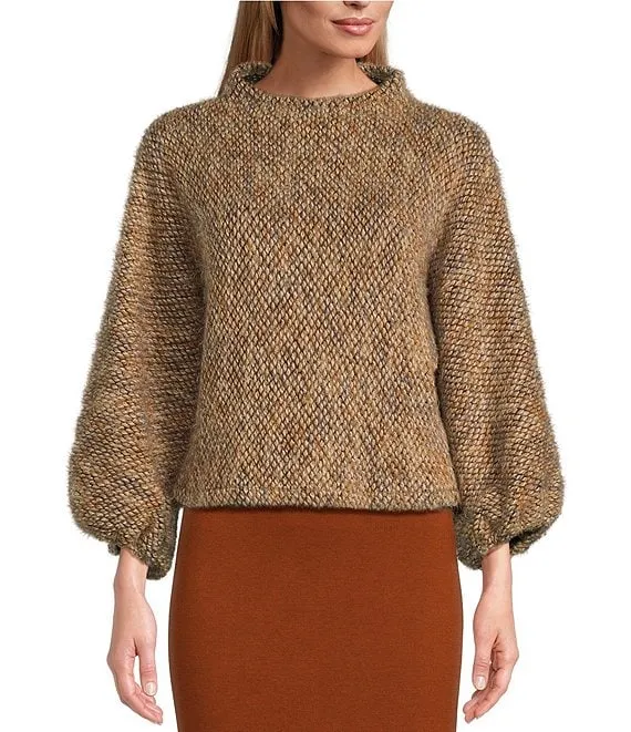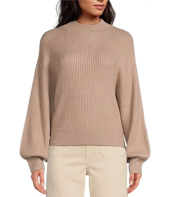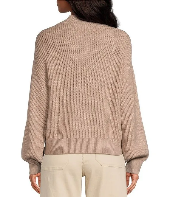 Mock Neck Long Balloon Sleeve Sweater