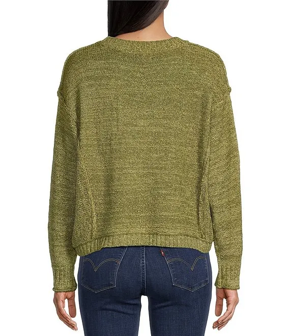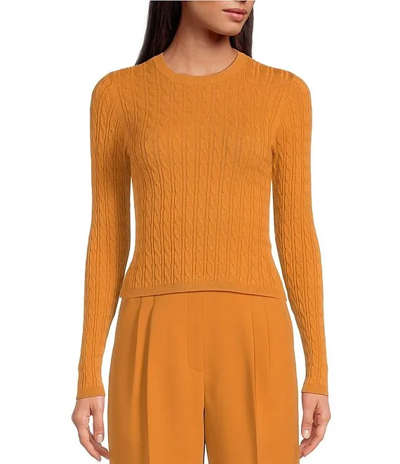 Cable Knit Crew Neck Long Sleeve Sweater Top