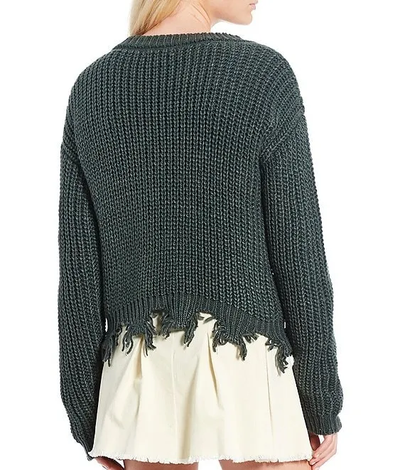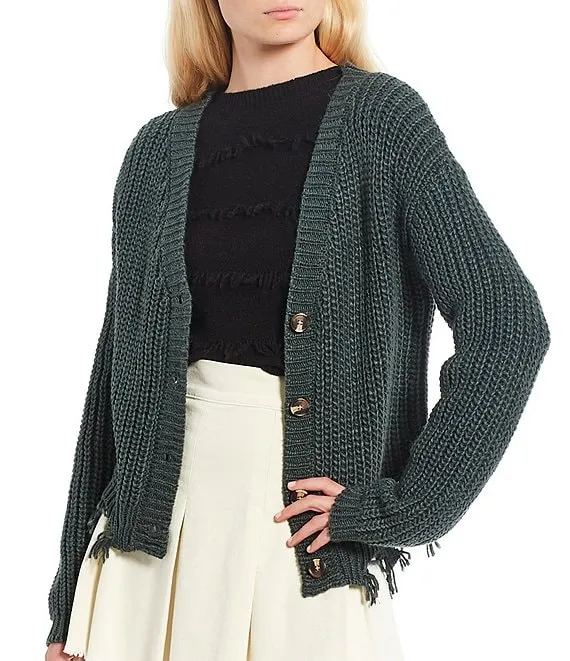 Distressed Hem Button Front Sweater