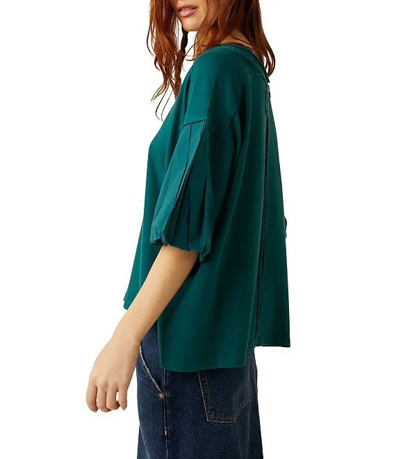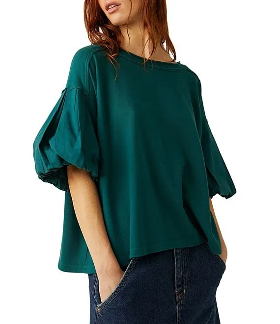 Blossom Short Puffed Sleeve Knit Shirt