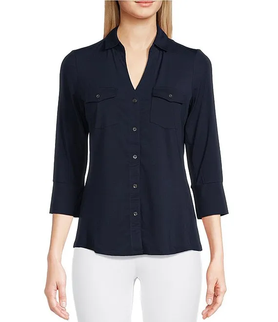 Brynn 3/4 Sleeve Point Collar Shirt